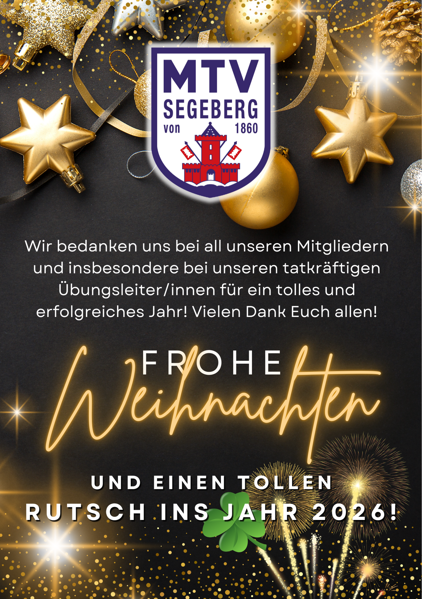 Wir wünschen Euch allen besinnliche Weihnachtsfeiertage und natürlich einen tollen Rutsch ins Jahr 2026! Wir freuen uns bereits jetzt auf viele, tolle Sportangebote und neuen Veranstaltungen mit Euch...macht mit!